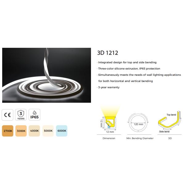 360 deg Bendable and Shapeable LED Neon 3D Strip for Flexible and Tensile Resistant Design 3D 1212